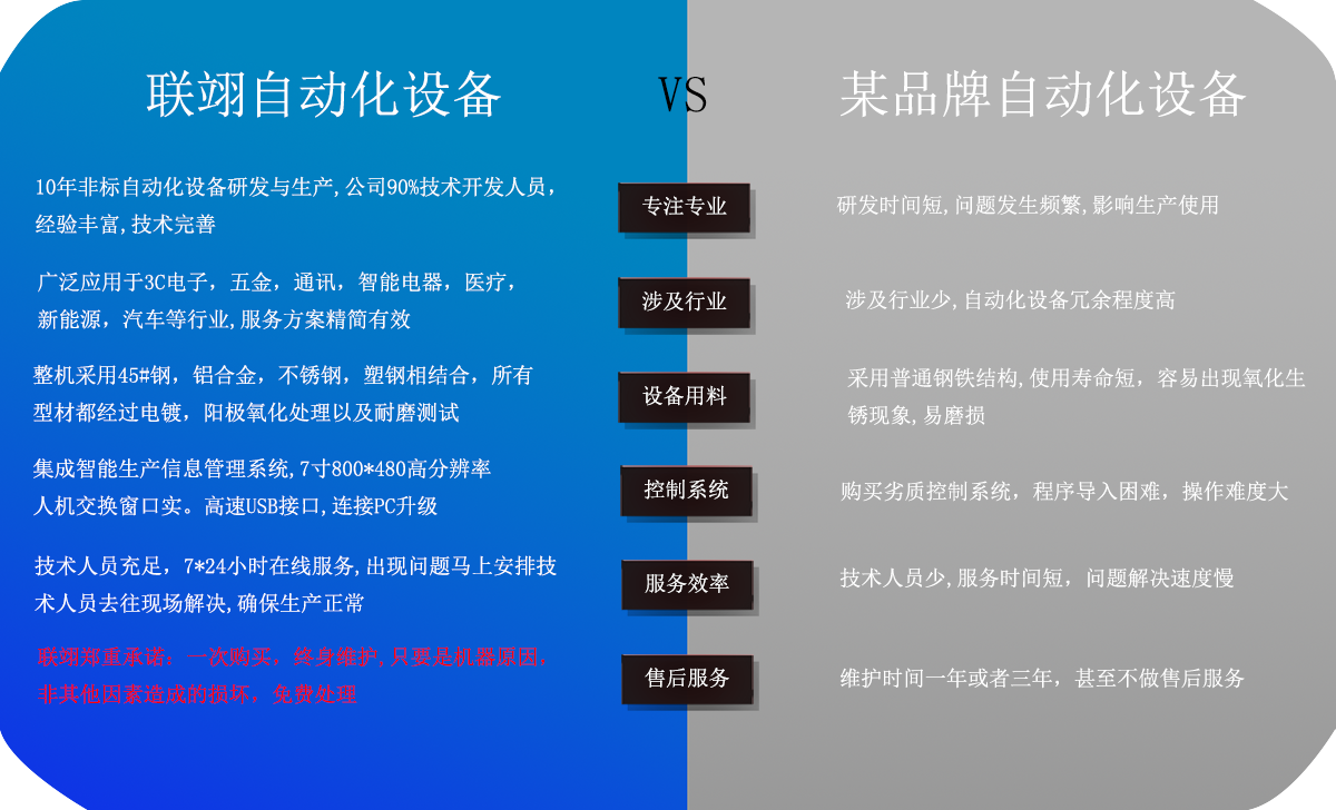 以后再說X東莞市聯翊智能設備科技有限公司創于2012年,專業研發制造自動組裝機,自動裝配線等非標自動化設備.